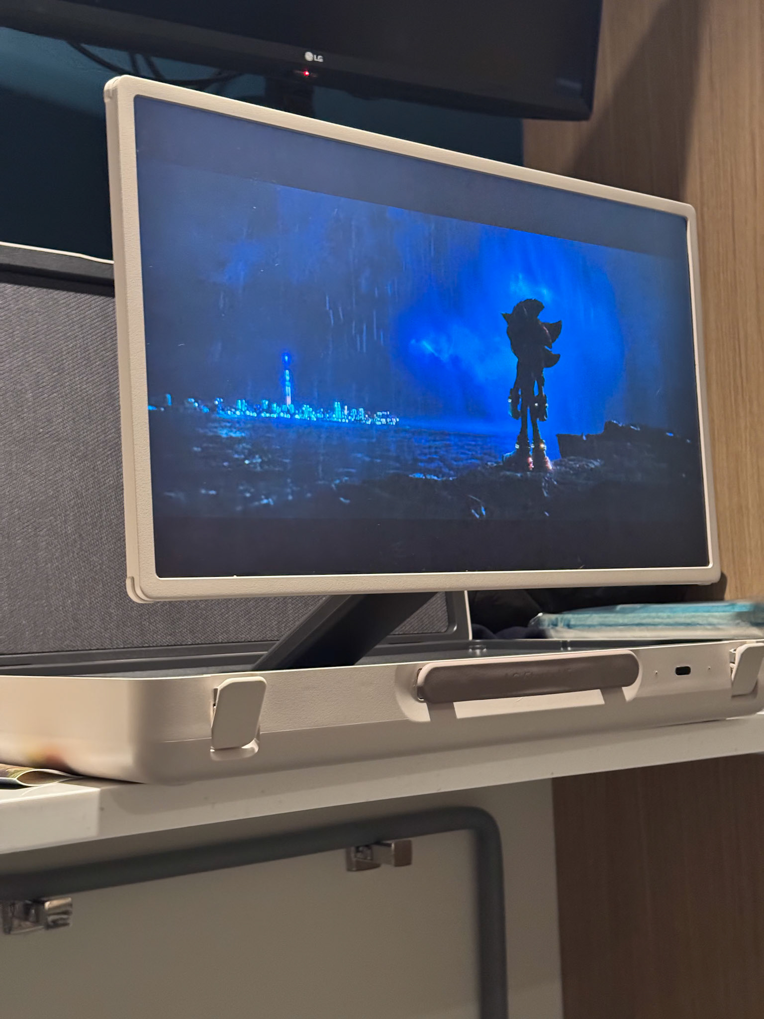 Cool looking baby heater 'Panda Heater' that looks like a Mr Buddy heater! I brought an LG stanbyme TV to watch Sonic 3! Works great and the image is great!